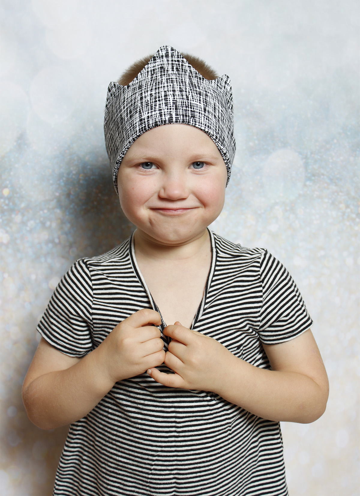 Kukapa lapsi ei haluaisi olla prinssi tai prinsessa. Kruunupanta kruunaa juhla-asun tai arki vaatteet. Kokeile laittaa hiukset ponihännälle, saparoille taikka leteille, niin on ihan erilainen tunnelma. Pojilla voi huiskasta hiukset pystyyn sojottamaan tai vedellä päätä myöten, niin on ihan kuin eri ritari kylässä.