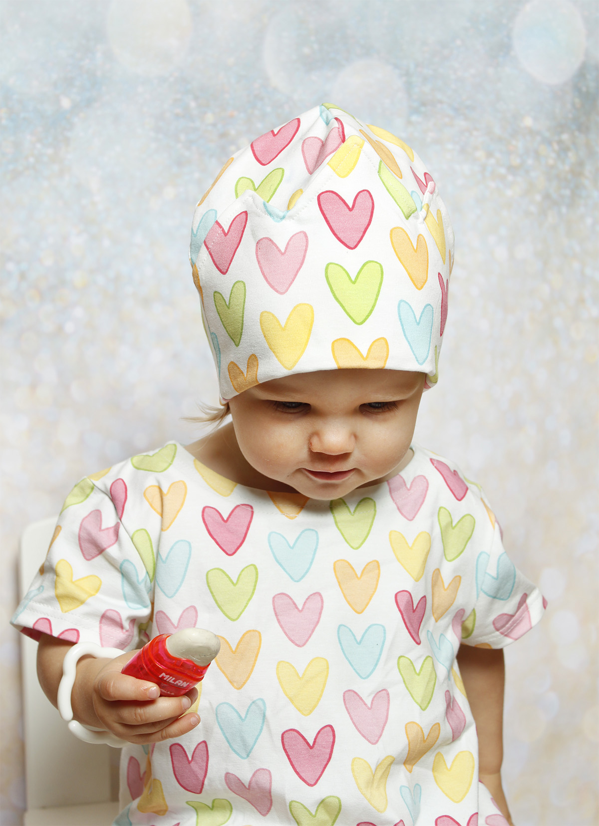 Rakkauspipo on tunnepipo. Samalla tavalla kuin lapsella voi olla haasteita rohkeudessa, niin hellyyden osoittaminenkin on joskus vaikeaa. Rakkaus pipo on lupa välittää, osoittaa hellyyttä ja harjoitella yhdessä oloa ja hyväksyntää. Toisaalta se voi myös julistaa hyvää oloa, iloista tyytyväistä mieltä ja syvää rakkautta erilaisiin asioihin… Lapsista oli tärkeätä että kangas ei ollut punainen tai pinkki. Värit onkin valittu niin että sieltä löytyisi mieluisa raikas suosikki väri jokaiselle.