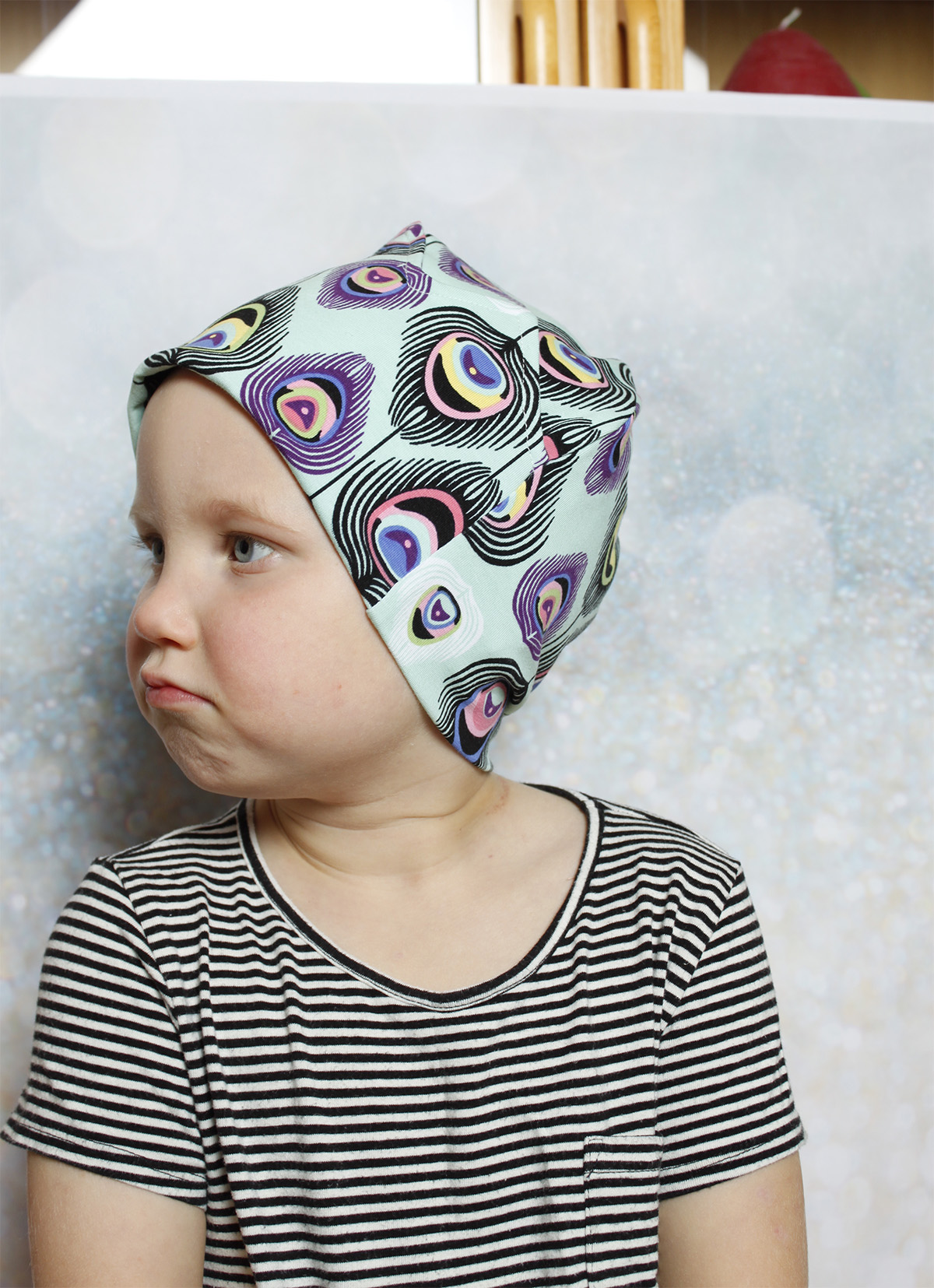 Olipa kerran® pipo on kaksinkertainen ja otsalla on kangasta 4 kerrosta.