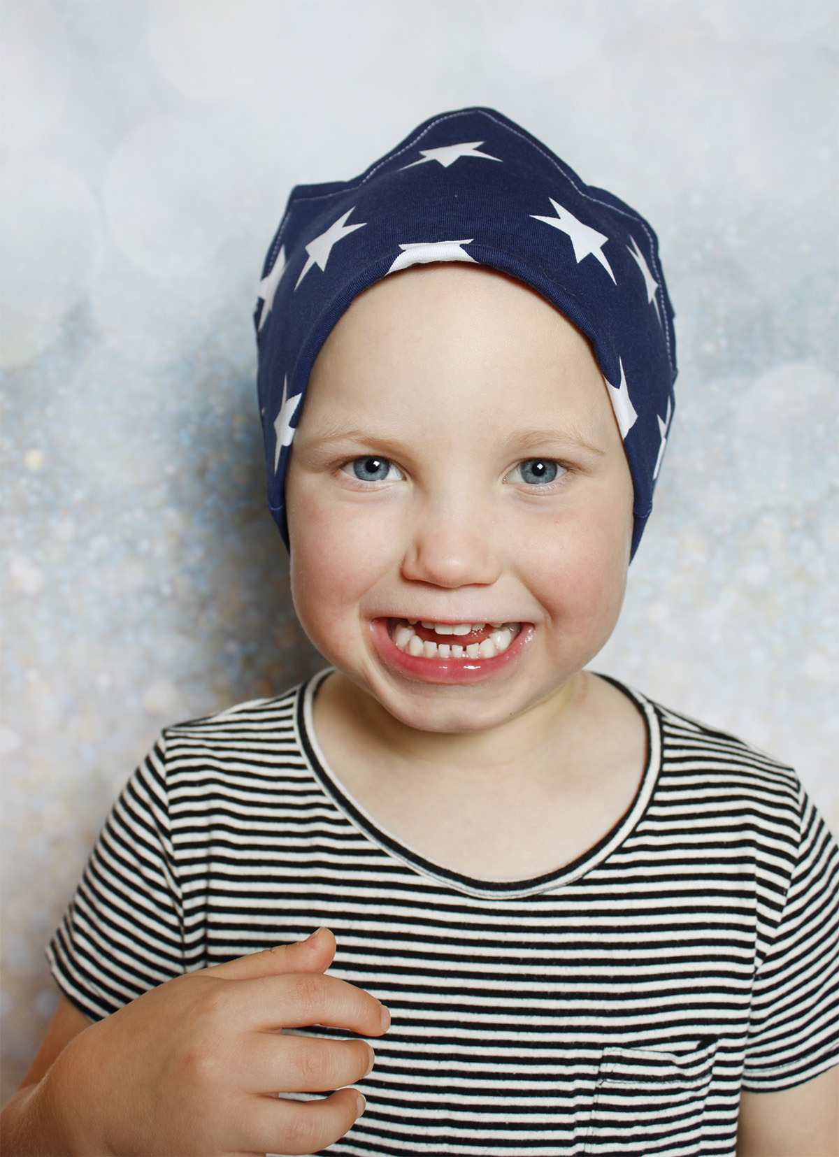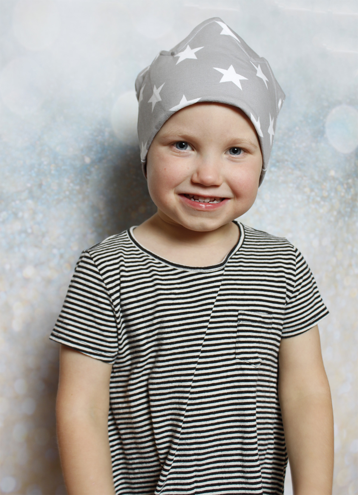 Olipa kerran® pipo on kaksinkertainen ja otsalla on kangasta 4 kerrosta.