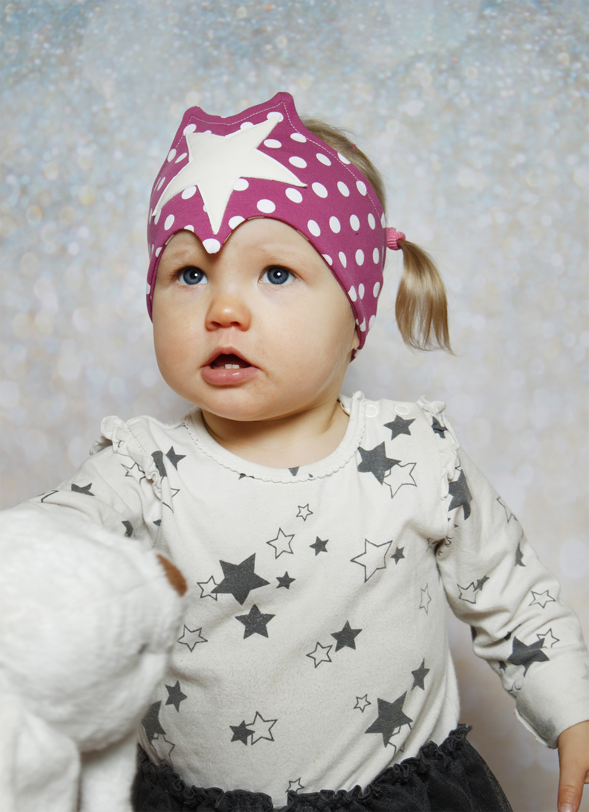Tähdet, tähdet… Onko teidän perheeseen syntynyt uusi stara? Tähtipanta on vähän menevämpi panta, mutta istuu päähän myös rauhallisemmallekin lapselle. Glitteriä, rimpsuhelmoja, väreihin sopiva paita ja mikrofoni, niin pikkuneiti voi aloittaa esiintymisensä.